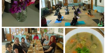 After our gentle movement, we shared a seasonal soup made from seasonal vegetables, kale, spinach, carrots, green beans, new potatoes and courgettes. Nourishing from the inside out , alongside a warming cup of hawthorn berry tea.